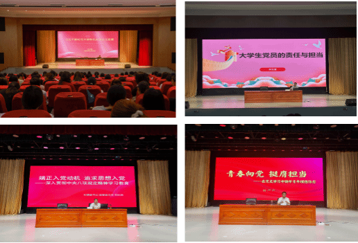 培训班采取专题讲座、视频教学、个人自学、现场教学等方式,安排学校有关部门负责人、马克思主义学院教师作了《习近平新时代中国特色社会主义思想》《大学生党员的责任与担当》《端正入党动机 追求思想入党》《青春向党 挺膺担当》等主题报告,观看了《榜样9》视频,参观了马克思主义学院百年党史走廊和虚拟仿真思政课体验教学中心,切实增强培训的针对性和实效性,帮助学员进一步坚定了理想信念、端正了入党动机、提升了思想觉悟。
