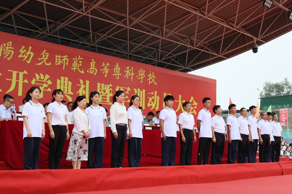 7时40分,在庄严雄壮的国歌声中,开学典礼暨军训动员大会拉开序幕。
