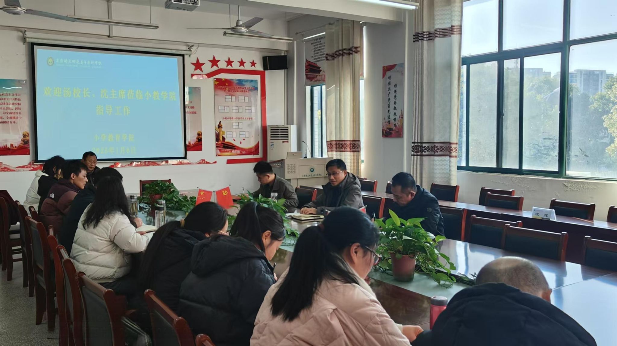 1月6日下午,校党委副书记、校长汤志到小学教育学院检查期末工作,围绕学校即将出台的全面深化改革方案进行专项调研。校党委委员、工会主席沈辉陪同调研。小学教育学院党总支书记朱启俊、学院党政班子及各专业带头人、教研室主任、基层党组织书记、博士、教授等参加座谈会。座谈会由小学教育学院院长郭玉敏主持。