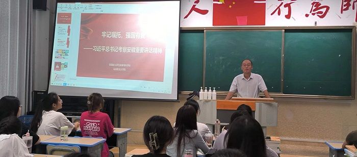 于华献、徐常恺在文津楼116教室听取了陈慧海老师讲授主题为《牢记嘱托 强国有我——学习习近平总书记考察安徽重要讲话精神》的“开学第一课”,课后交流中,对课堂中师生整体表现给予了充分肯定。