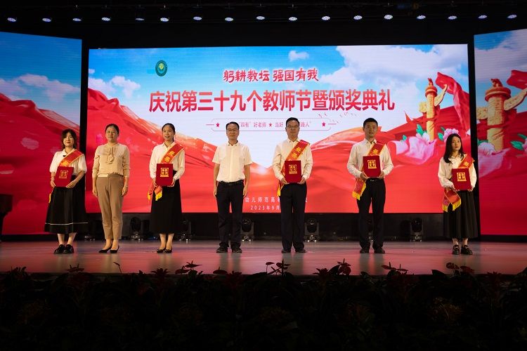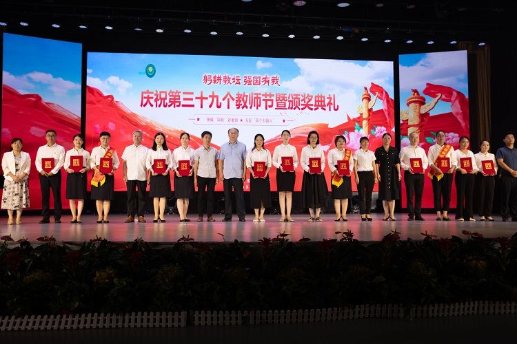 9月8日下午,我校庆祝第39个教师节暨颁奖典礼在德馨楼演艺大厅举办。校领导金杰、于华献、孙驰、陈绪龙、许宗志、徐常恺,各部门、学院党政负责人、全体教职员工和学生代表观看了颁奖典礼。