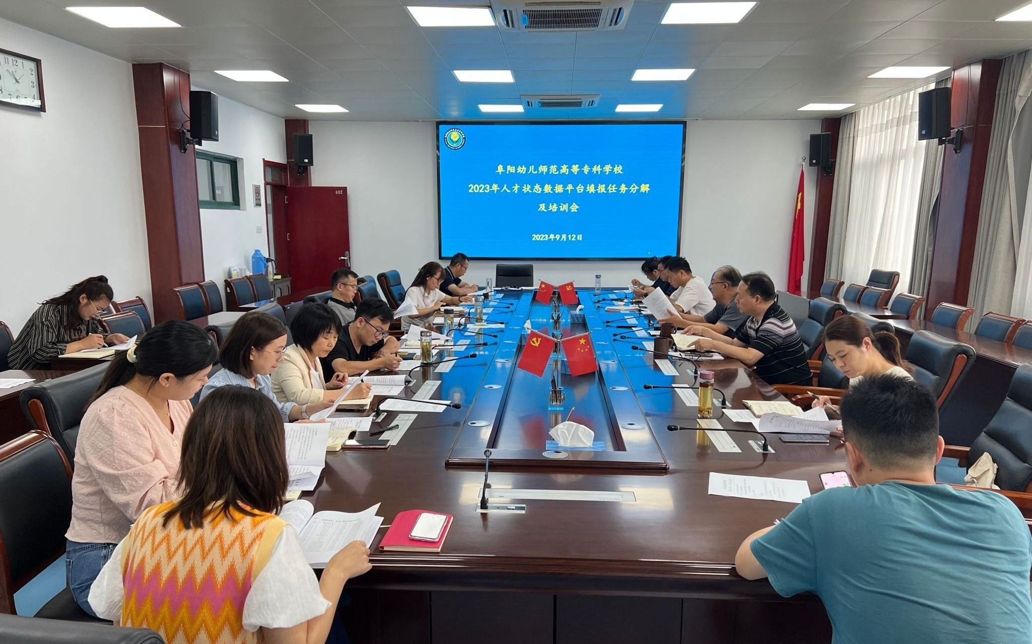 2023年9月12日上午,我校2023年度人才培养工作状态数据采集工作部署会议在文津楼602召开,校党委委员、副校长陈绪龙,办公室、监察室、组织人事处、财务处、教务处、学生处、图文信息中心、各二级学院负责人及教学秘书参加会议。会议由陈绪龙主持。