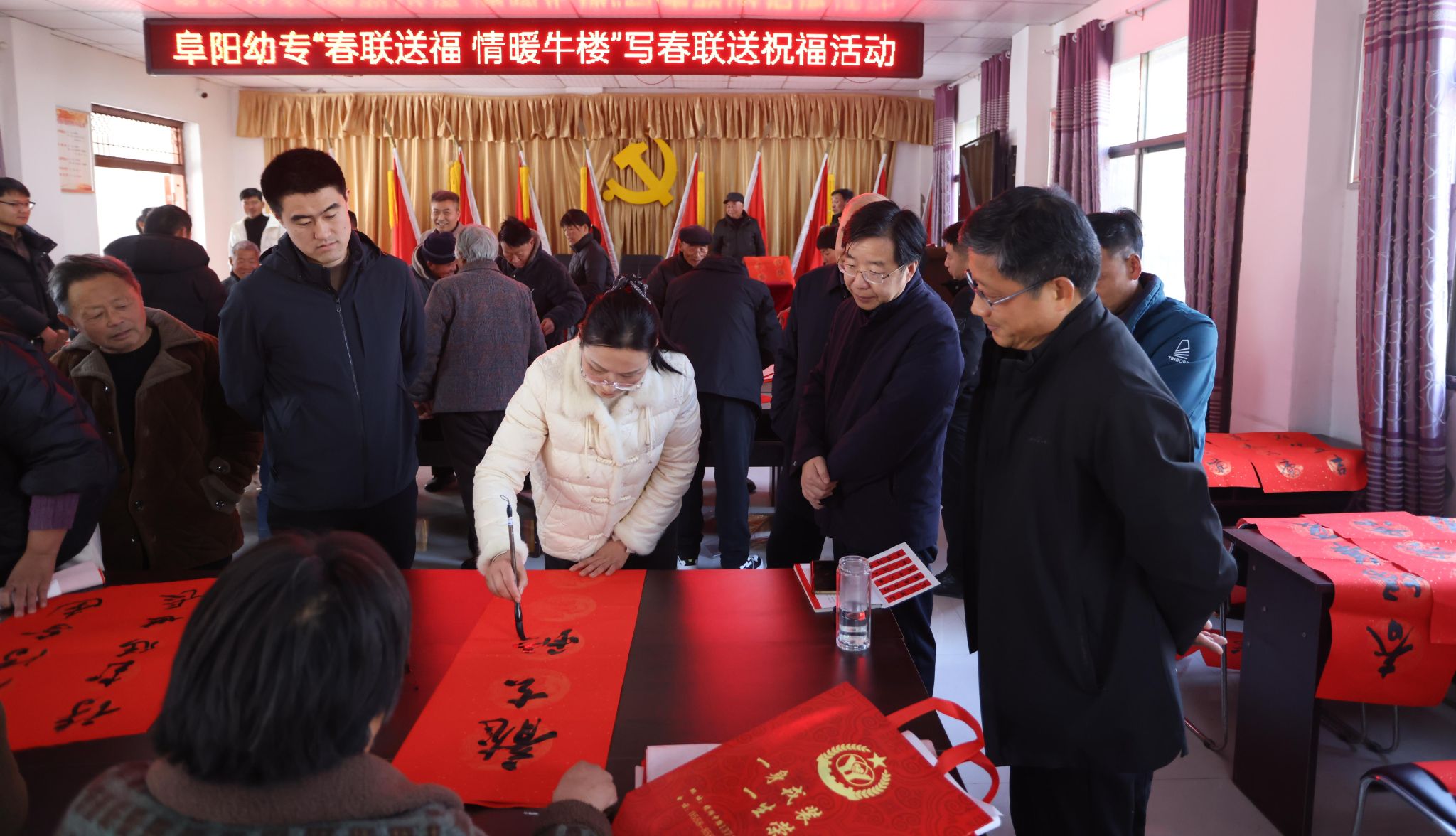 在牛楼村党员活动室,学校还组织了多名书法老师现场写赠春联,将新春祝福和美好祝愿融入笔墨之间,送到乡亲们的手中。村民们纷纷表示,送春联活动让他们感受到喜庆的节日气氛,不但拉近了村委与群众之间的距离,还为牛楼村营造浓浓的年味。
