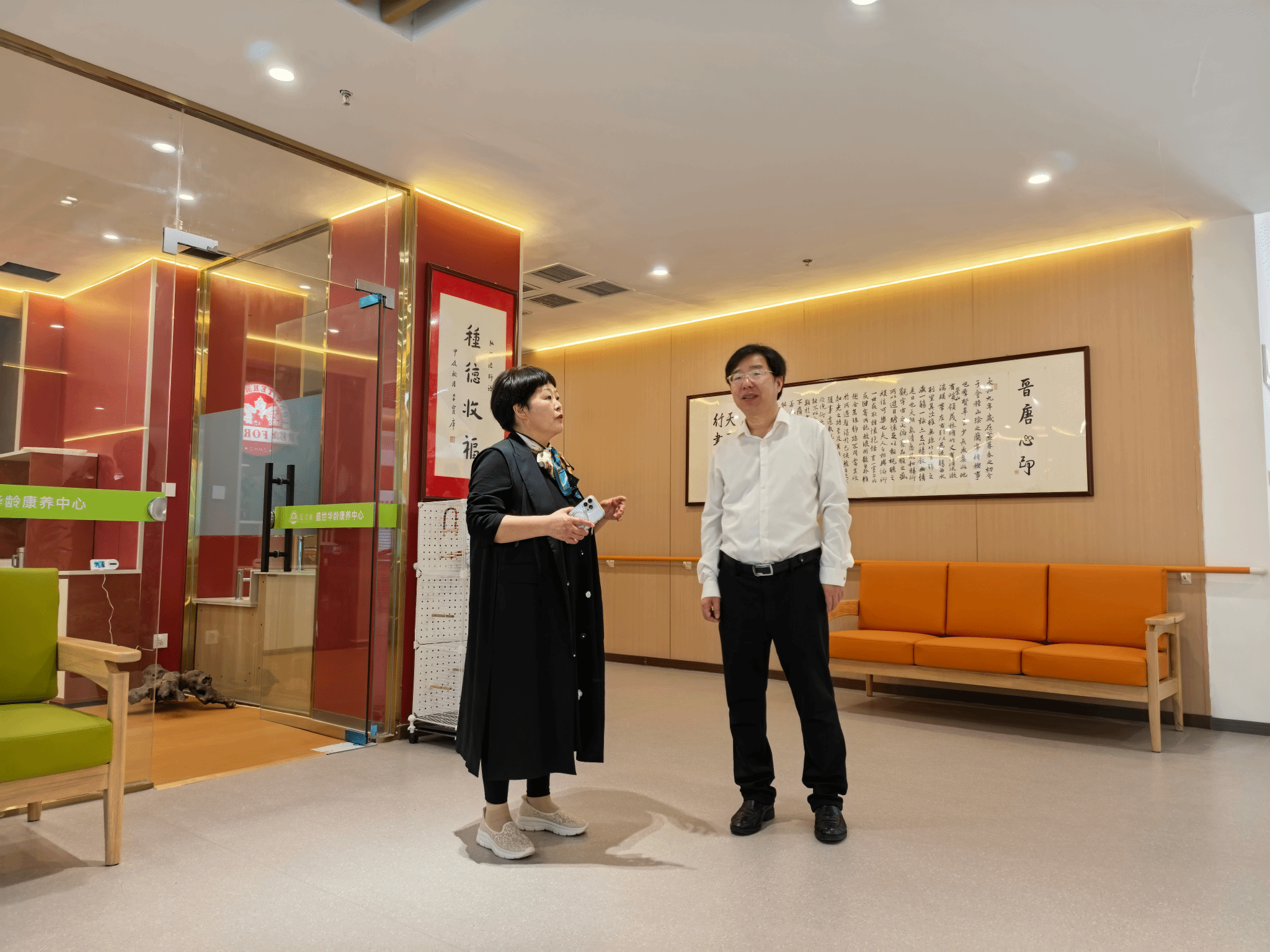董志诚一行先后参观了红叶林盛世华龄康养中心和阜阳市老年公寓(红叶林养老护理院),深入了解机构的运营模式、服务内容、智能化设施及人才需求情况。在红叶林盛世华龄康养中心,考察团队参观了智慧养老服务平台、长者活动区域和特色康养服务设施,对中心的智能化养老服务模式给予了高度评价。在阜阳市老年公寓(红叶林养老护理院),实地考察了老年人生活区、康复区、医疗区等功能区域,详细了解了护理院的日常运营和管理情况。