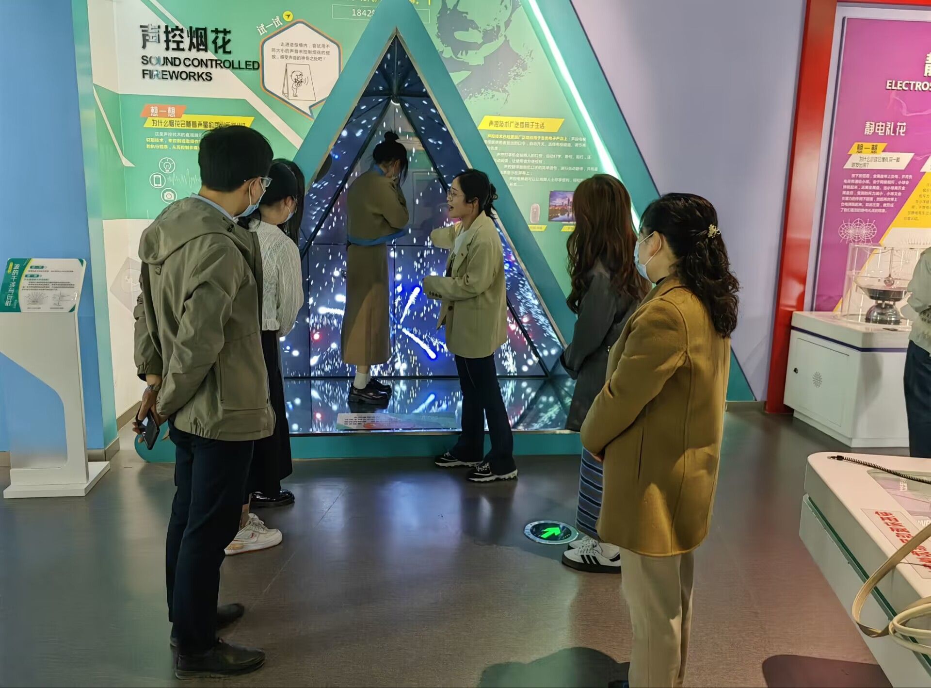 阜阳市科技馆以“天地·人·科技”为主题,设置了序厅、科学乐园、智慧创造、我与我家、天地之间五大展厅。在力学定律、电磁之谜、声光之美、数学之奇展区,通过付红波和孙丽苹两位老师的讲解,同学们开启了一场生动的科学探索之旅。大家纷纷动手实践验证自己学习的物理和数学知识,这不仅让他们了解了每个展台内蕴含的科学原理,同时也增强了他们努力学习科学的热情。