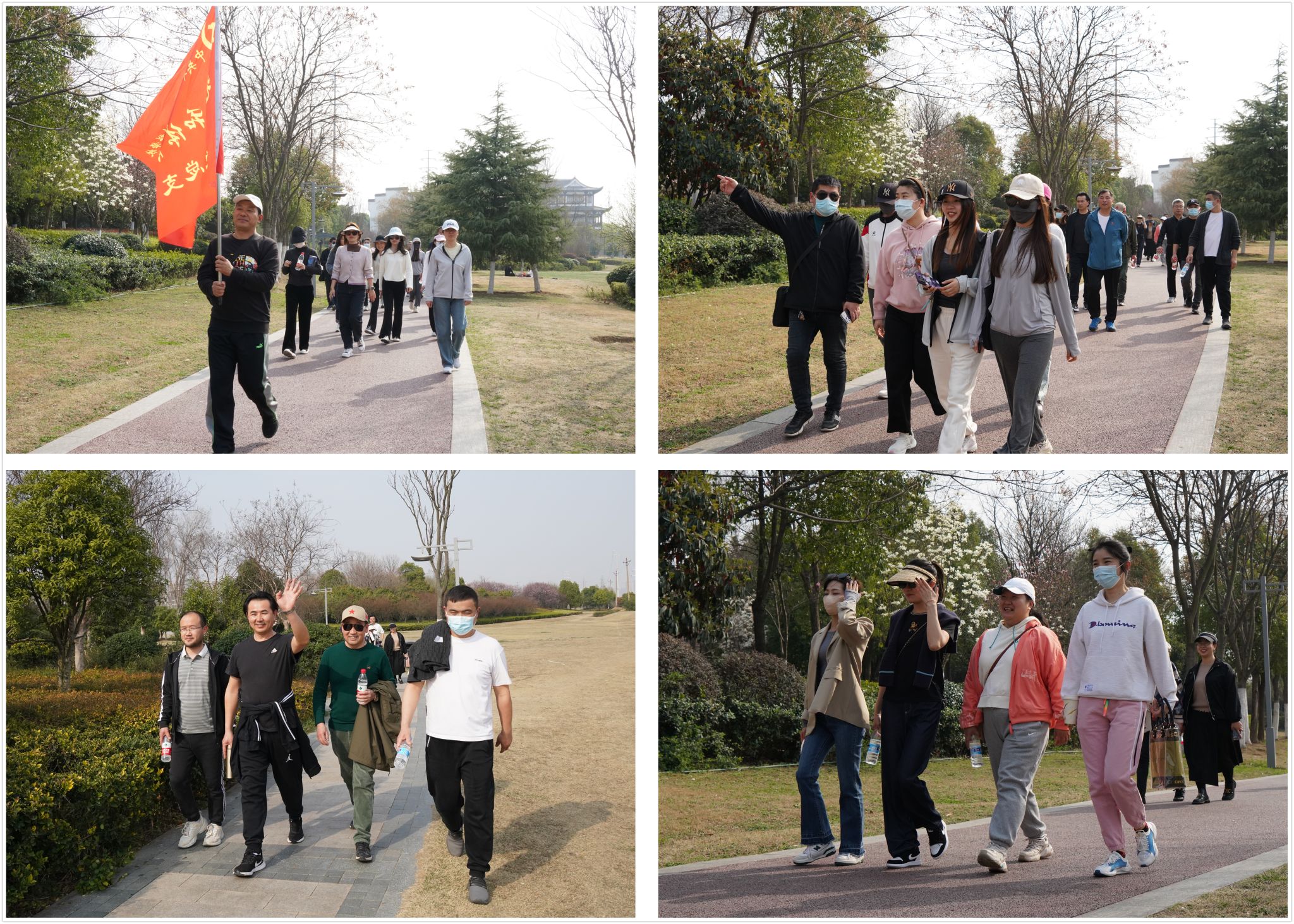 活动中,大家在七渔河阜阳市园林展馆集合,集体合影后大家围绕七渔河公园一周进行5公里徒步走。花在丛中开,人在花中笑,一路上院旗迎风招展,大家欢声笑语,谈笑风生,沿途景色如画,尽显大美阜阳美景,同事们结伴而行,感受着鸟语花香,春风拂面,即释放了心灵,又收获了健康。为了保障活动的安全、顺利举行,学院为大家准备了医药包、矿泉水和节日慰问品。