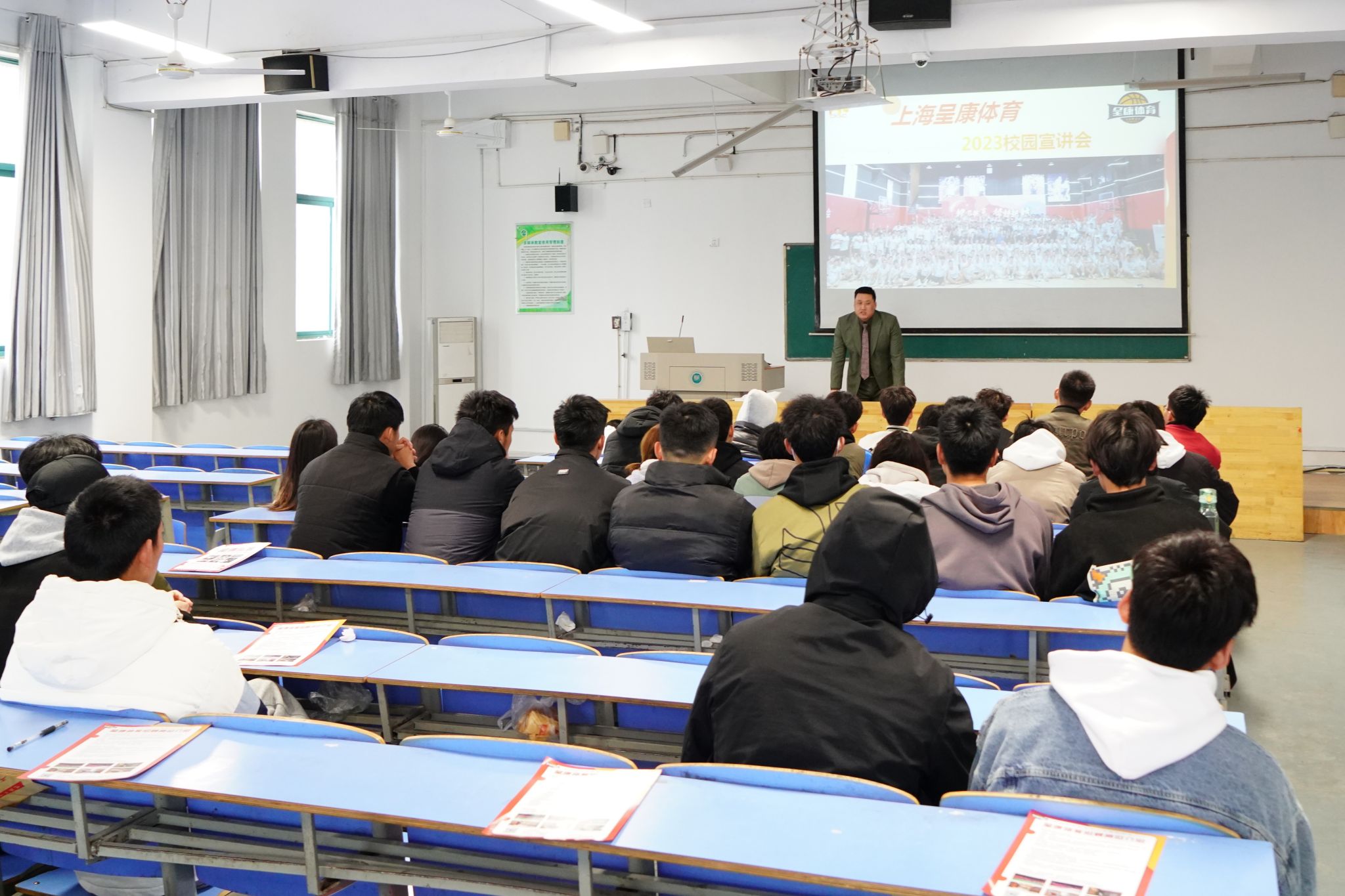 为深入贯彻落实党中央、国务院关于稳就业保就业的决策部署,进一步深化校企合作,强化产学研融合,有效推动协同育人。3月17日上午,艺术和体育学院在至善楼阶地教室举行了2023届体育专业毕业生专场招聘会,招聘企业上海呈康体育向毕业生做招聘宣讲,2020级辅导员和体育教育专业学生参加会议。