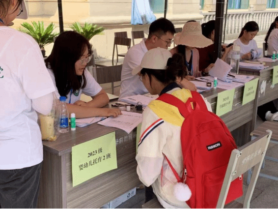 为确保新生顺利入学,学前教育学院以专业班级为单位,设置了十个迎新报到台,组建了一支由院学生会、院志愿者协会、2022级同学代表组成的迎新服务队,并设置了党员先锋岗、绿色通道、综合服务台等各类服务点,做到“让新生温暖,让家长放心”,为新生提供便利的“一站式”暖心报到服务。