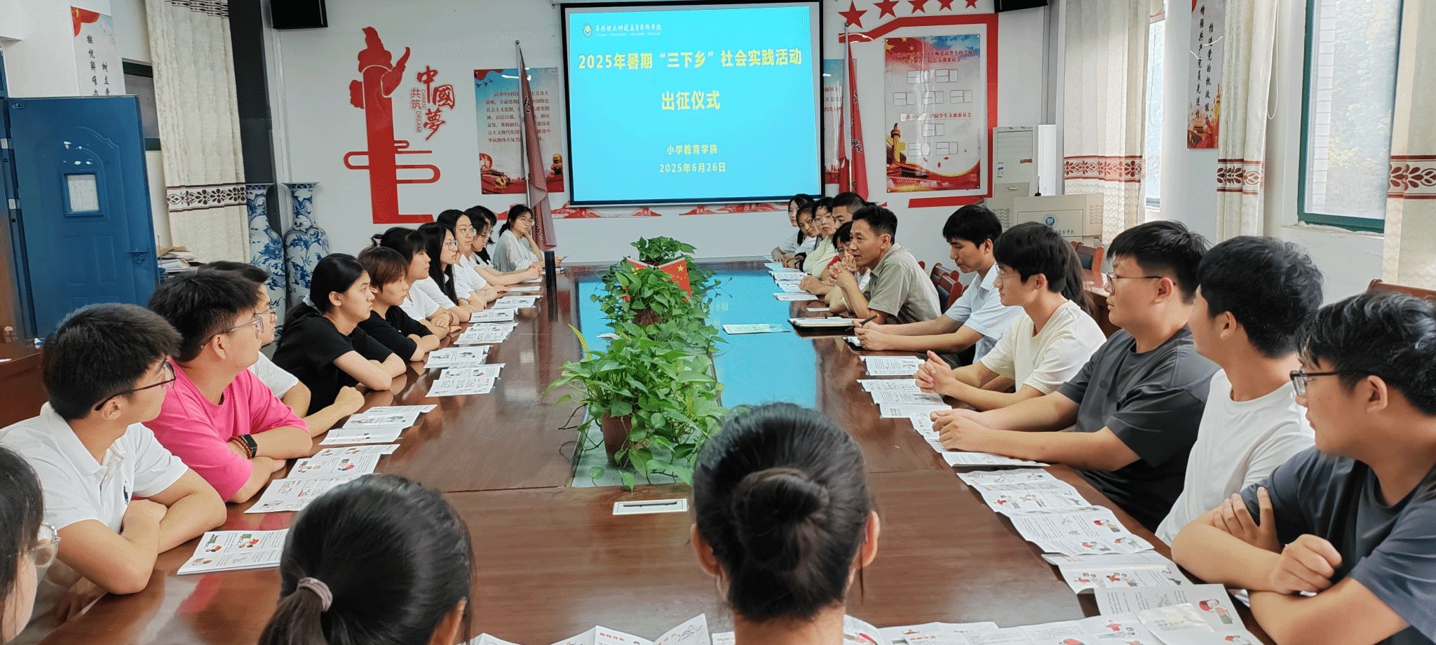为深入学习贯彻习近平新时代中国特色社会主义思想和党的二十大、二十届三中全会精神,贯彻落实习近平总书记关于青年工作的重要思想,不断提升实践育人成效,引导广大青年学子在社会实践中厚植家国情怀、锤炼过硬本领、贡献青春智慧。小学教育学院于6月26日上午隆重举行2025年大学生暑期“三下乡”社会实践活动出征仪式。学院党总支书记朱启俊、各实践团队指导老师及全体队员齐聚一堂,共启实践征程。