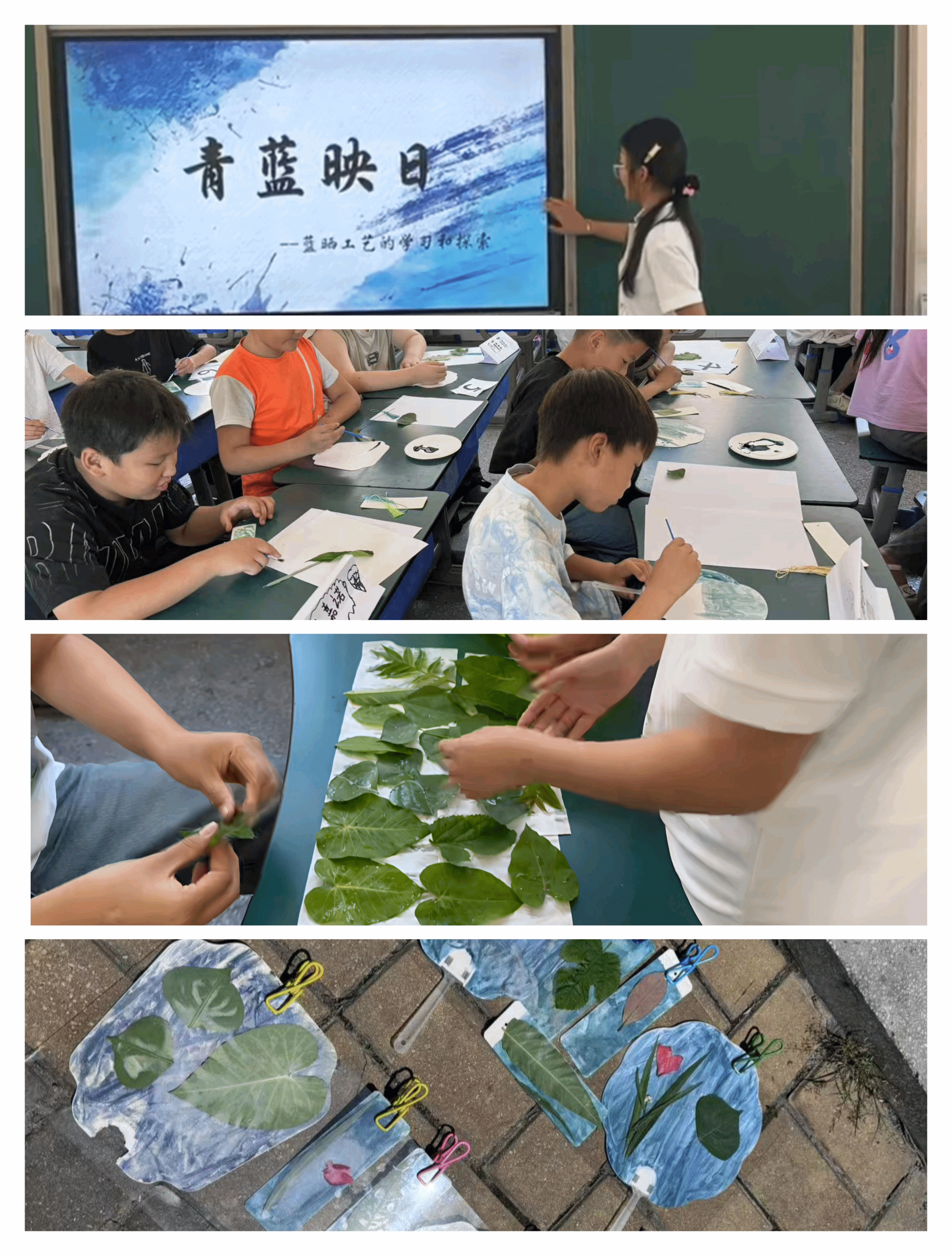副队长谢佳慧带领学生体验“蓝晒工艺”,通过原理讲解与实操制作,让孩子们感受传统工艺的蓝色魅力。